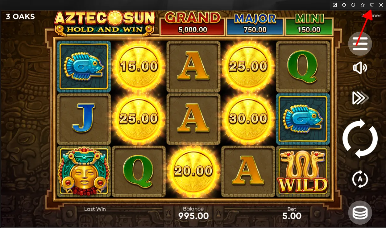 Aztec Sun: Hold and Win ক্লাসিক লাইন-যান্ত্রিকতাকে আধুনিক “লক অ্যান্ড উইন” ফিচারের সঙ্গে উজ্জ্বলভাবে যুক্ত করেছে। পিরামিড-Scatter ফ্রি স্পিন দেয়, সাপ-Wild কম্বিনেশন শক্তিশালী করে, আর বোনাস-মুদ্রা Mini, Major ও Grand Jackpot-এর অনুসন্ধান খুলে দেয়। সূক্ষ্ম গ্রাফিক্স, স্বতঃসিদ্ধ অডিও এবং সৎ RTP ≈ ৯৫.৫ % একত্রে নতুন ও হাই-রোলার উভয়ের মন জয় করে।