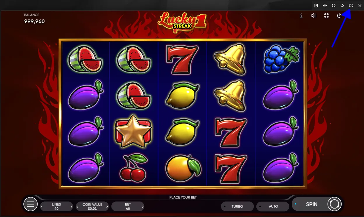 - যদি স্লট তবু রিয়েল-মোডে খোলে, নির্দেশিকায় দেখানো ক্ষুদ্র টগলে ক্লিক করো; সাধারণত এটি «স্পিন» বাটনের পাশে বা গেম-উইন্ডোর ওপরের বারে থাকে।