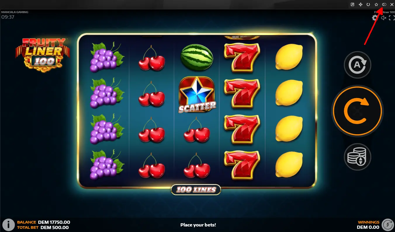 - कैसिनो लॉबी में Fruityliner 100 खोलें।